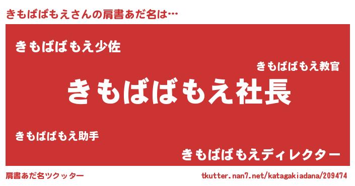 | 欧米人風あだ名 | 『マイケルきもばばもえ』 |