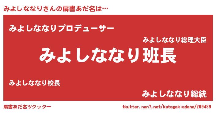 | 意味不明あだ名 | 『とにかく怪しいみよしななり』 |