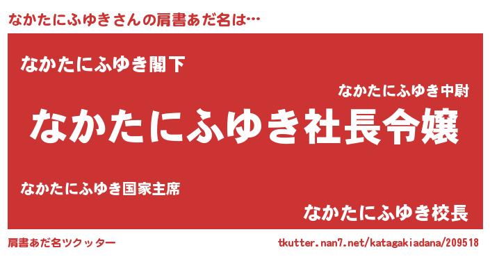 | 男性向けラノベタイトル風あだ名 | 『なかたにふゆきの憂鬱』 |