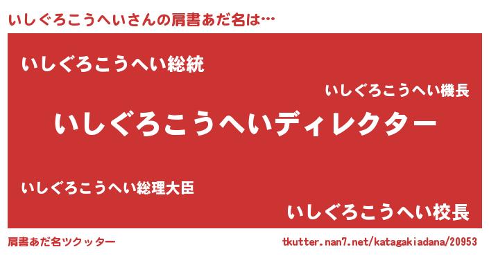 | ヒーロー風カッコイイあだ名 | 『最強戦士イシグロコウヘイ』 |
