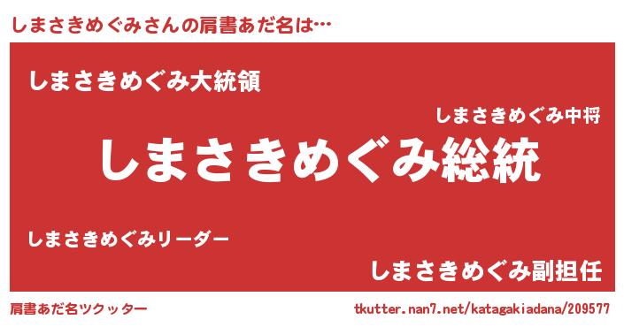 | 意味不明あだ名 | 『自称しまさきめぐみ』 |