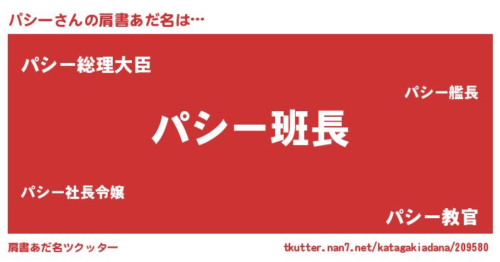 | 意味不明あだ名 | 『とにかく怪しいパシー』 |