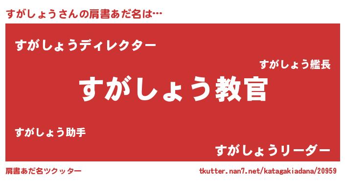| 意味不明あだ名 | 『住所不定無職すがしょう(6歳)』 |