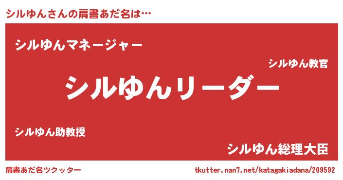 | ヒーロー風カッコイイあだ名 | 『黄金騎士シル』『ウルトラシルゆんマン』 |