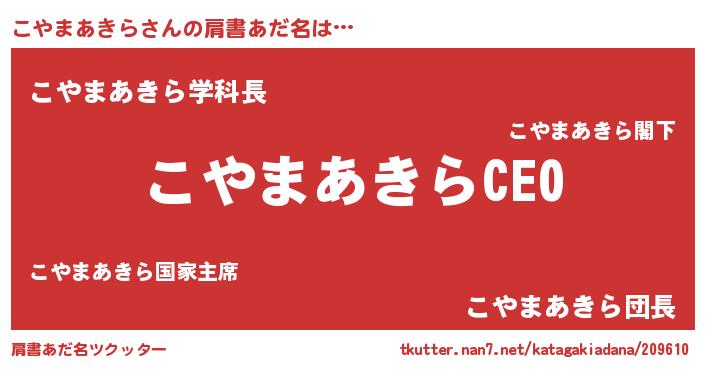 | 男性向けラノベタイトル風あだ名 | 『こやまあきらの憂鬱』 |