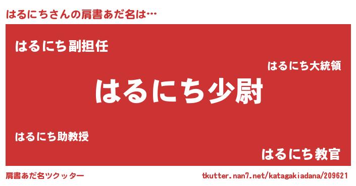 | 男性向けラノベタイトル風あだ名 | 『転生したらはるにちだった件』 |