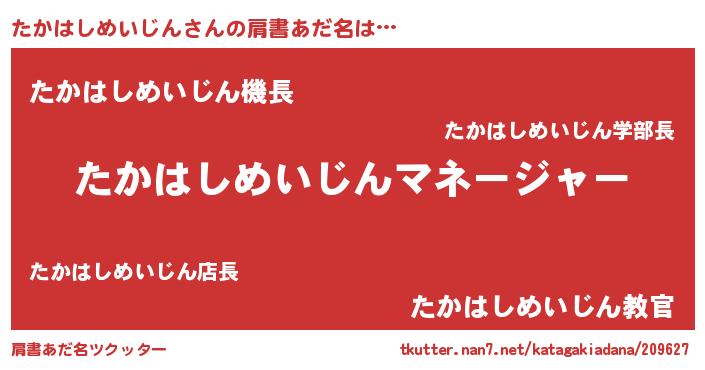 | 男性向けラノベタイトル風あだ名 | 『はたらくたかはしめいじんさま!』 |