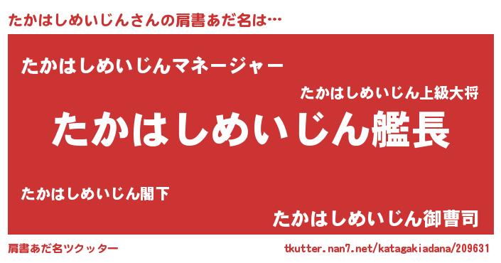 | 欧米人風あだ名 | 『たかはしめいじん・ステッグマイヤー』 |