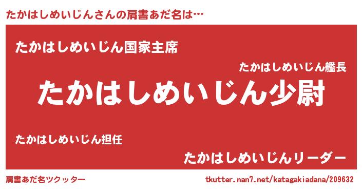| 男性向けラノベタイトル風あだ名 | 『転生したらたかはしめいじんだった件』 |