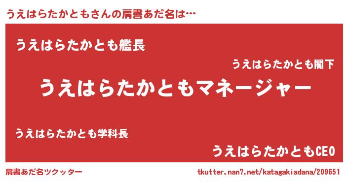| 胡散臭い通販商品みたいなあだ名 | 『必ず成功するブレスレット…その名も「うえはらたかとも」』 |