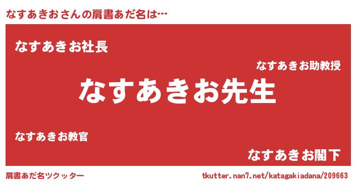 | 意味不明あだ名 | 『永久保存なすあきお』『自称なすあきお』 |