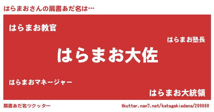 | ヒーロー風カッコイイあだ名 | 『仮面ハラダー』『ウルトラはらまおマン』 |