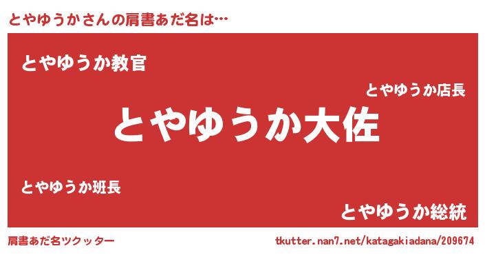 | ヒーロー風カッコイイあだ名 | 『仮面トヤダー』『最強戦士トヤユウカ』 |