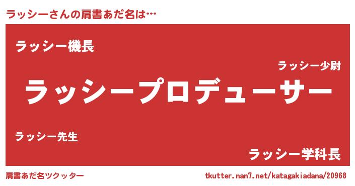 | 男性向けラノベタイトル風あだ名 | 『はたらくラッシーさま!』 |