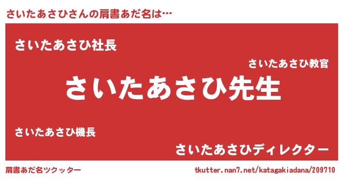 | 意味不明あだ名 | 『永久保存さいたあさひ』 |