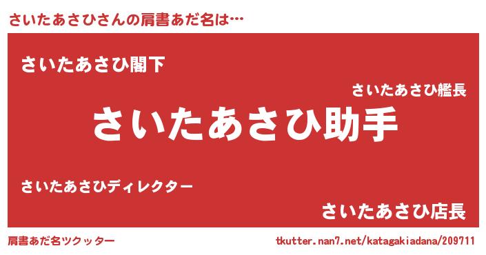 | 女子向けラノベタイトル風あだ名 | 『さいたあさひ夫妻のなれそめ』 |