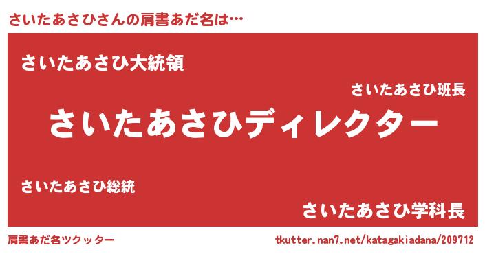 | 意味不明あだ名 | 『さいたあさひフォーエバー』 |