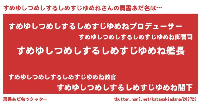 | 意味不明あだ名 | 『自称すめゆしつめしするしめすじゆめね』 |