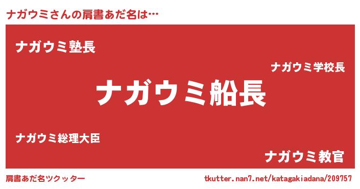 | 胡散臭い通販商品みたいなあだ名 | 『信頼と実績のサプリメント…その名も「ナガウミ」』 |