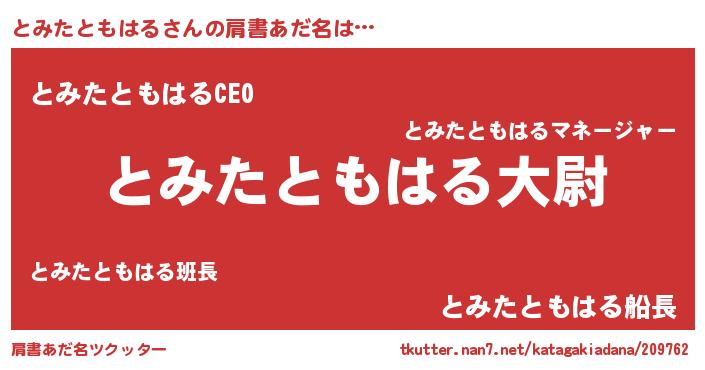 | 男性向けラノベタイトル風あだ名 | 『とみたともはる~年齢イコール彼女いない歴の魔法使い~』 |