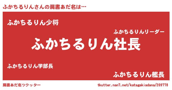| 女子向けラノベタイトル風あだ名 | 『ふかちるりん姫と円卓の騎士』 |
