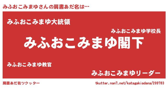| 意味不明あだ名 | 『自称みふおこみまゆ』 |