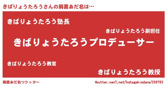 | 伝説のあだ名 | 『解き放たれた遊び人きばりょうたろう』 |