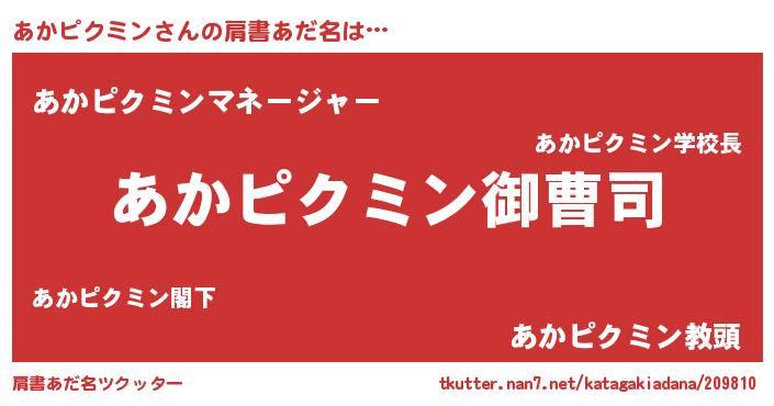 | 男性向けラノベタイトル風あだ名 | 『あかピクミンの憂鬱』 |