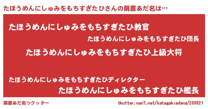 | 欧米人風あだ名 | 『トリンドルたほうめんにしゅみをもちすぎたひ』 |