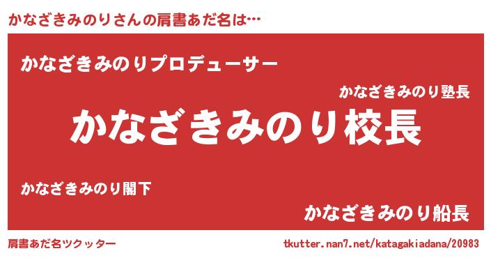 | 男性向けラノベタイトル風あだ名 | 『かなざきみのりという概念が存在しない退屈な世界 』 |
