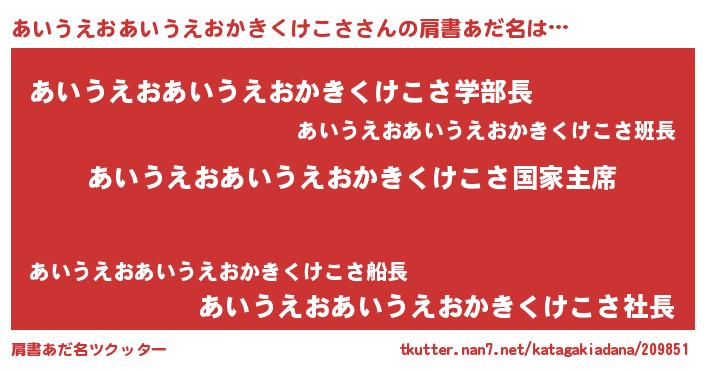 | 男性向けラノベタイトル風あだ名 | 『やはりあいうえおあいうえおかきくけこさの青春ラブコメはまちがっている 』 |
