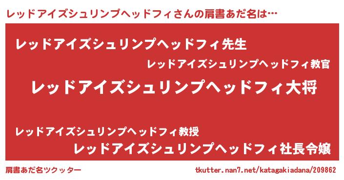 | ヒーロー風カッコイイあだ名 | 『ネオレッドアイズシュリンプヘッドフィ』 |