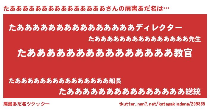 | 意味不明あだ名 | 『住所不定無職たあああああああああああああああ(5歳)』 |