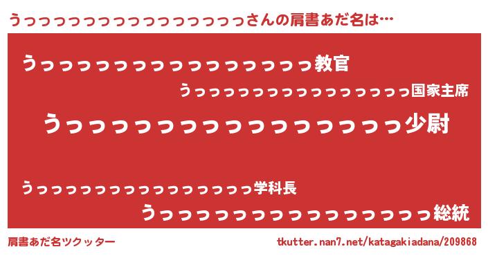 | 胡散臭い通販商品みたいなあだ名 | 『あなたにだけ特別に提供する限定10本のレアな日本酒…その名も「うっっっっっっっっっっっっっっっ」』 |