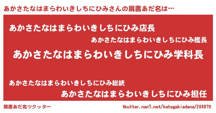 | 男性向けラノベタイトル風あだ名 | 『ノーゲーム・ノーアカサタナハマラワイキシチニヒミ』 |
