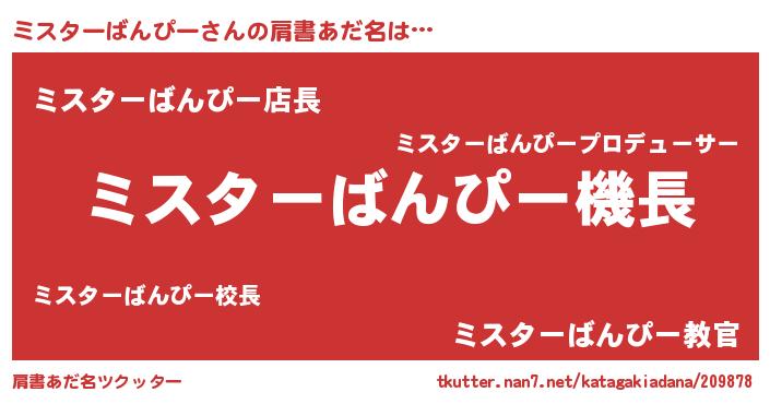 | 胡散臭い通販商品みたいなあだ名 | 『モテモテ間違いなし霊験あらたかなお札…その名も「ミスターばんぴー」』 |