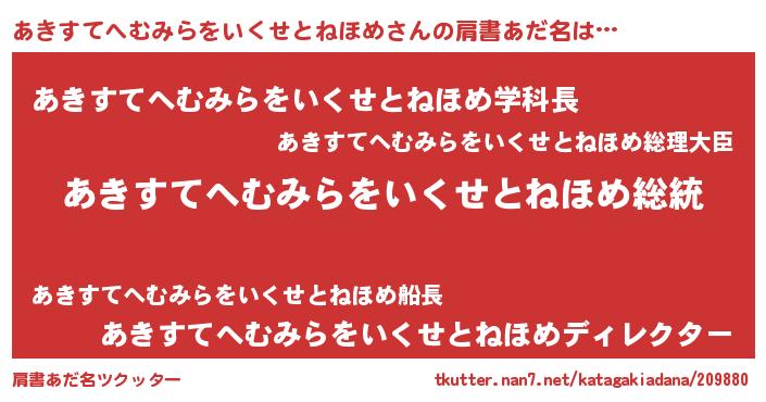 | 意味不明あだ名 | 『自称あきすてへむみらをいくせとねほめ』 |