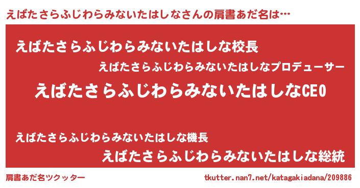 | ヒーロー風カッコイイあだ名 | 『スーパーエバタサラフジワラミナイタハシナ』 |