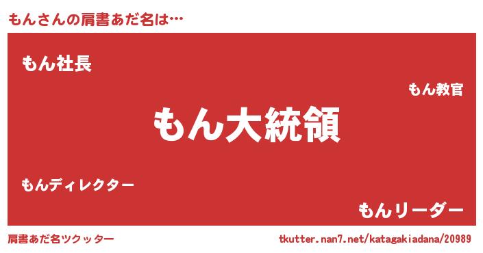 | 女子向けラノベタイトル風あだ名 | 『もん伯爵の花嫁』『もんは平凡を望む』 |