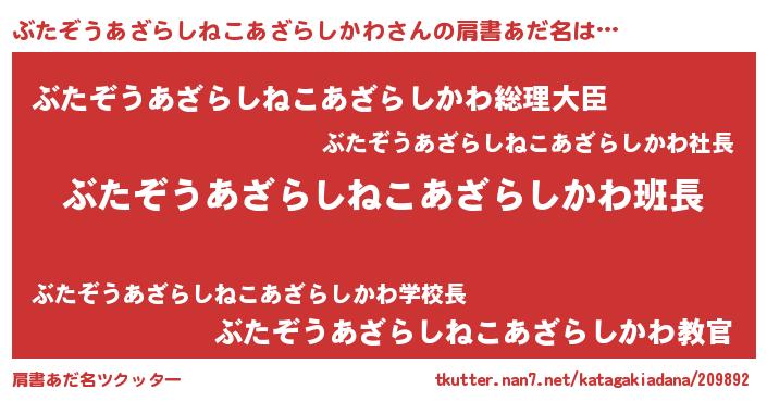 | 男性向けラノベタイトル風あだ名 | 『ダンジョンにぶたぞうあざらしねこあざらしかわを求めるのは間違っているだろうか』 |