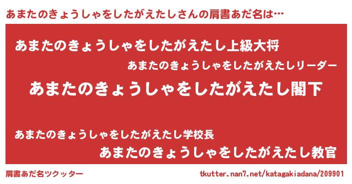 | 意味不明あだ名 | 『自称あまたのきょうしゃをしたがえたし』 |