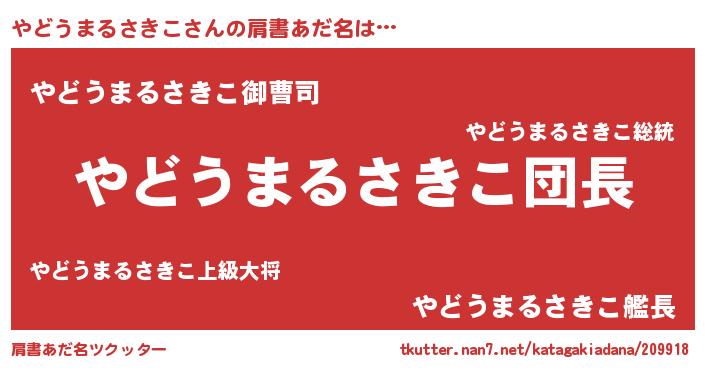 | 女子向けラノベタイトル風あだ名 | 『やどうまるさきこは平凡を望む』 |