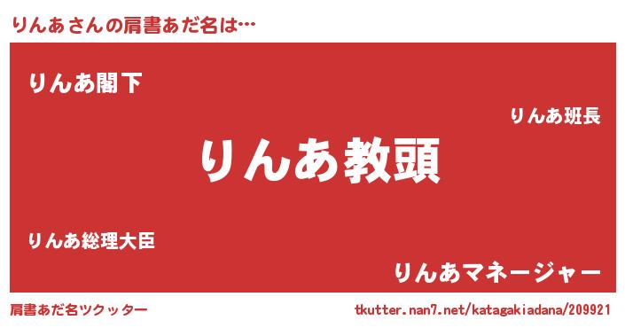 | 男性向けラノベタイトル風あだ名 | 『りんあという概念が存在しない退屈な世界 』 |