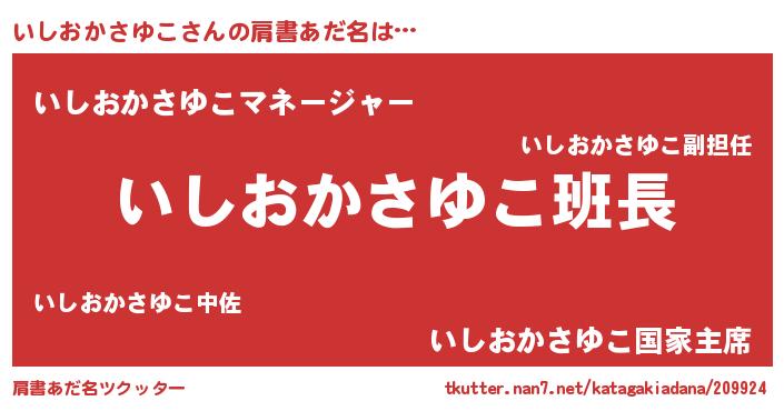 | 欧米人風あだ名 | 『ウサインいしおかさゆこ』 |