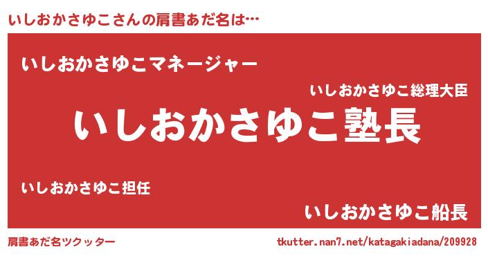 | 欧米人風あだ名 | 『ウサインいしおかさゆこ』 |