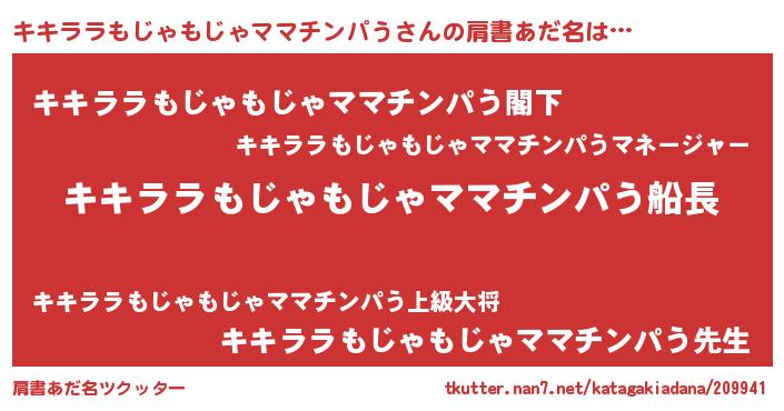 | ヒーロー風カッコイイあだ名 | 『サイバー戦士キキララモジャモジャママチンパウ』 |