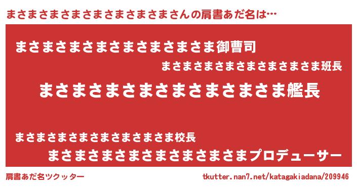 | 男性向けラノベタイトル風あだ名 | 『うちのまさまさまさまさまさまさまさまが世界を掌握している!』 |
