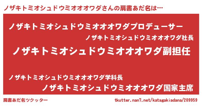 | 意味不明あだ名 | 『永久保存ノザキトミオシュドウミオオオワダ』 |