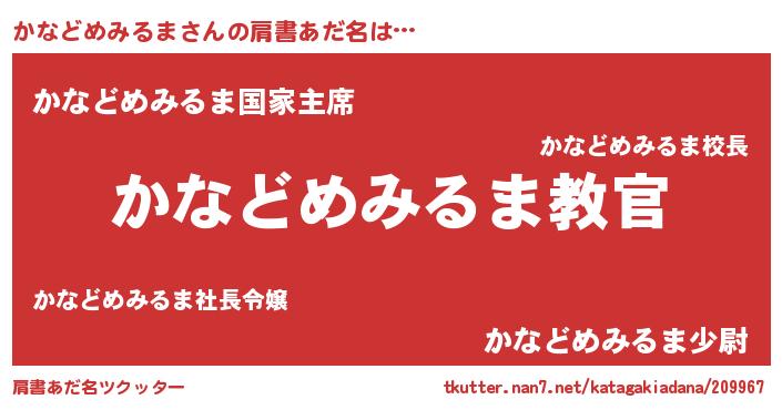 | 男性向けラノベタイトル風あだ名 | 『魔弾の王とかなどめみるま』 |