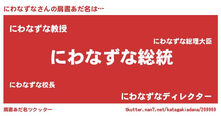 | 男性向けラノベタイトル風あだ名 | 『Re:にわなずなから始める異世界生活』 |